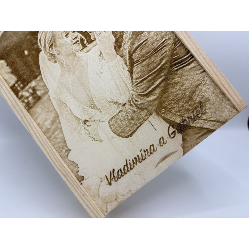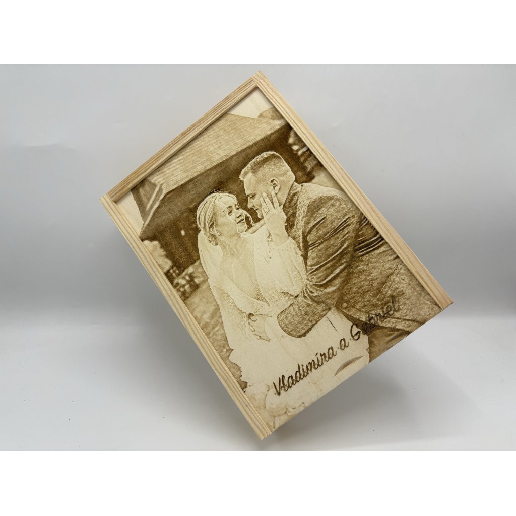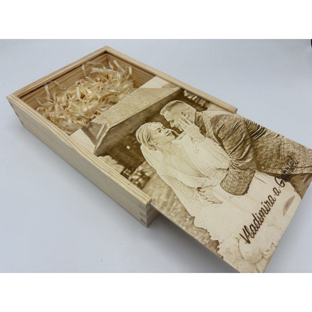 Drevená krabička na usb s gravírovanou fotografiou
