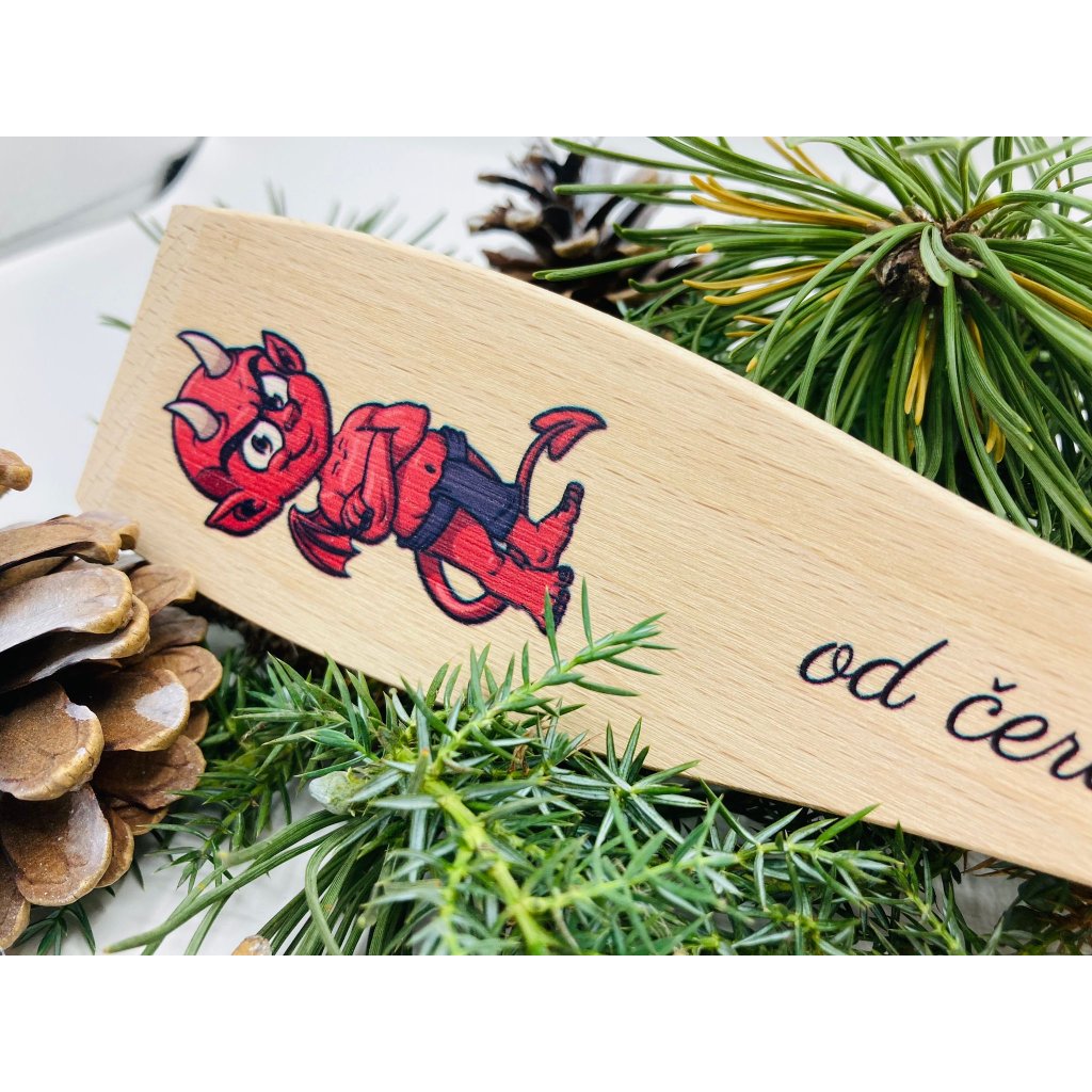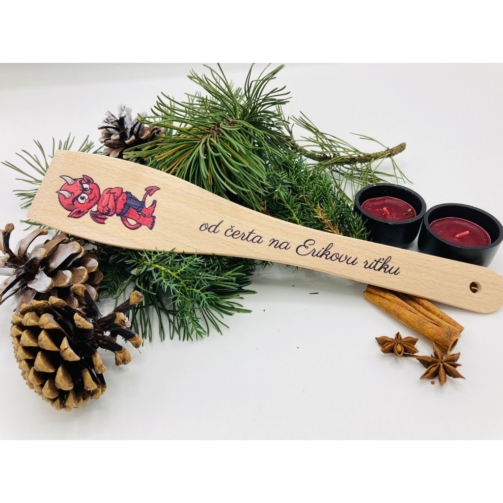 Potešte deti originálnym darčekom, ktorý ich určite rozosmeje! Drevená mikulášska vareška s potlačou čertíka a vtipným textom "Od čerta na Erikovu riťku" je ideálnym spôsobom, ako pridať humor do sviatočného obdobia. Vareška nie je len praktická, ale aj zábavná – skvelý doplnok do každej kuchyne!