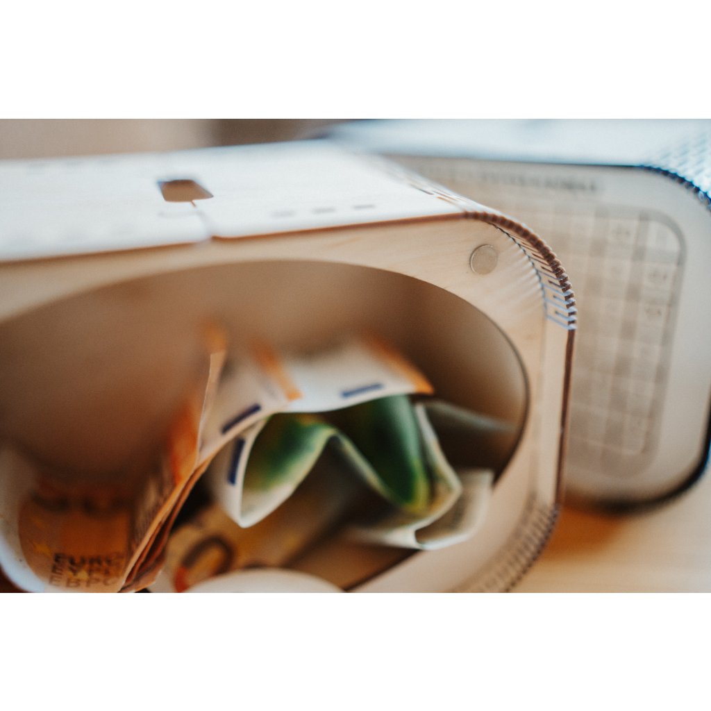 Na výrobu sme použili vysoko kvalitné prírodné drevo. Je nielen krásne na pohľad, ale aj ekologické a bezpečné pre vaše dieťa. Žiadne ostré hrany, žiadne toxické farby – len čistá kvalita, ktorá vydrží roky. Táto pokladnička je tak odolná, že sa môže stať rodinným dedičstvom!