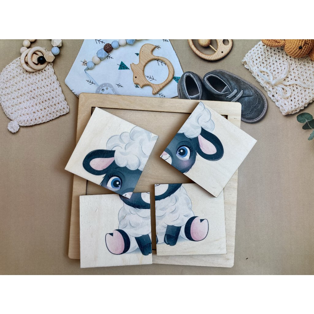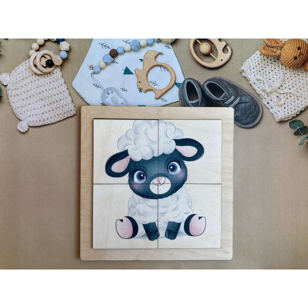 Drevená skladačka pre malé deti s potlačou obrázka. Magická vôňa tradičných drevených hračiek.