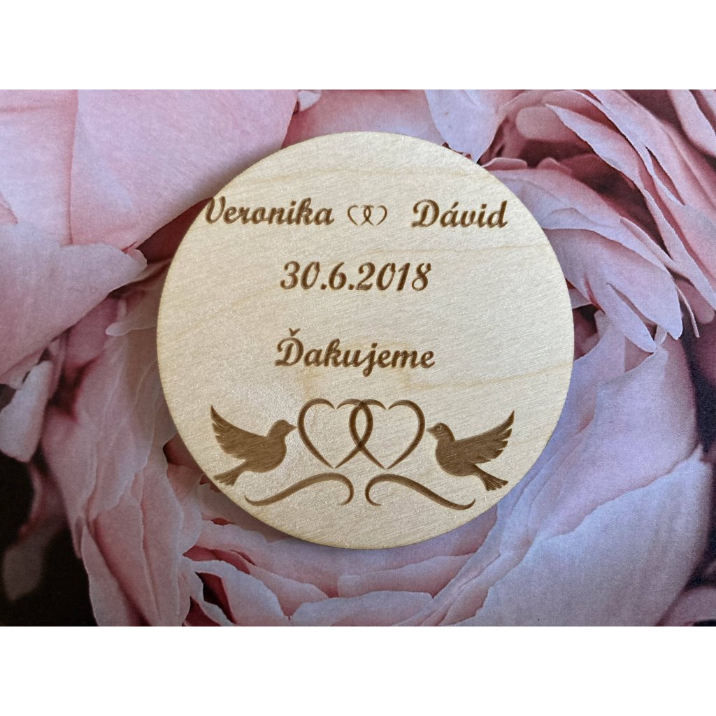 drevené magnetky vyrábané na mieru ako skvelý darček pre svadobných hostí na pamiatku .