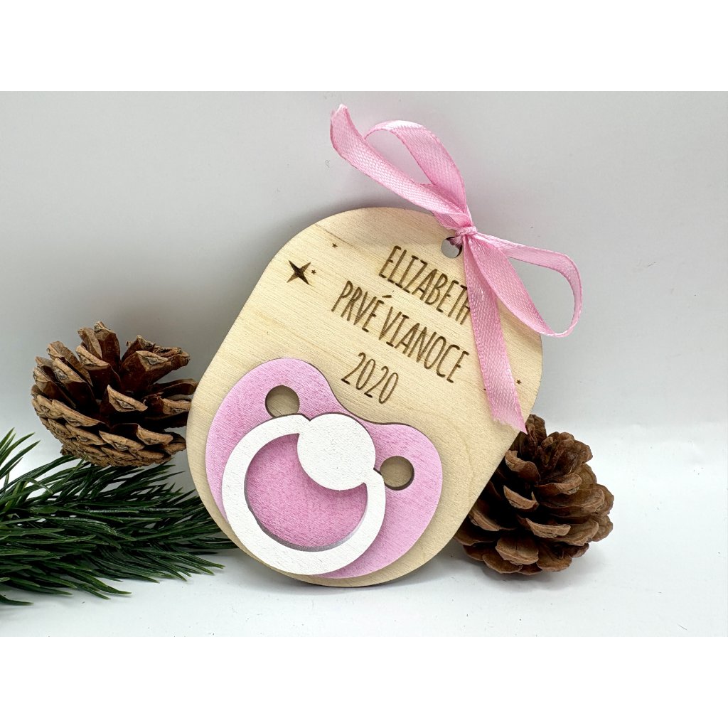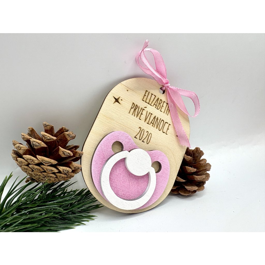 Drevená vianočná ozdoba „Prvé Vianoce dievčatka“ – drevená ozdoba s menom dieťatka a rokom