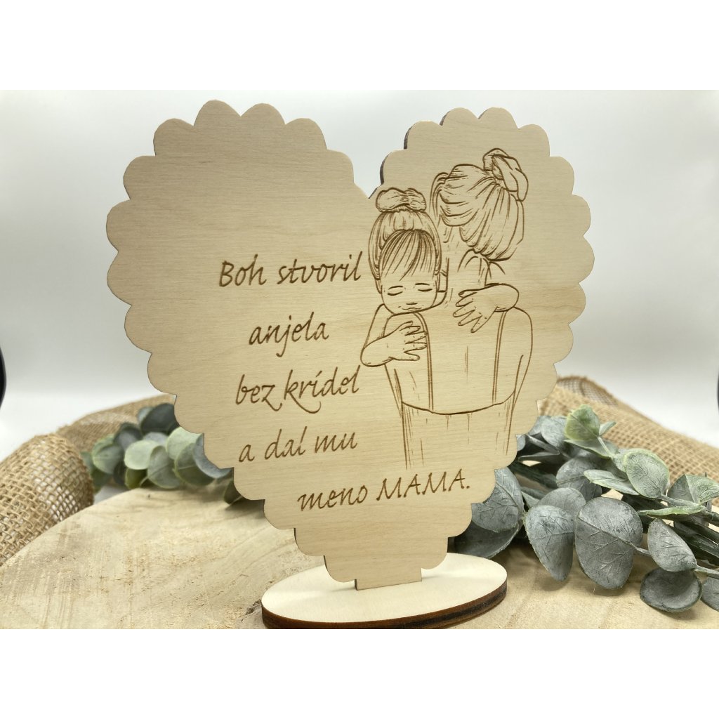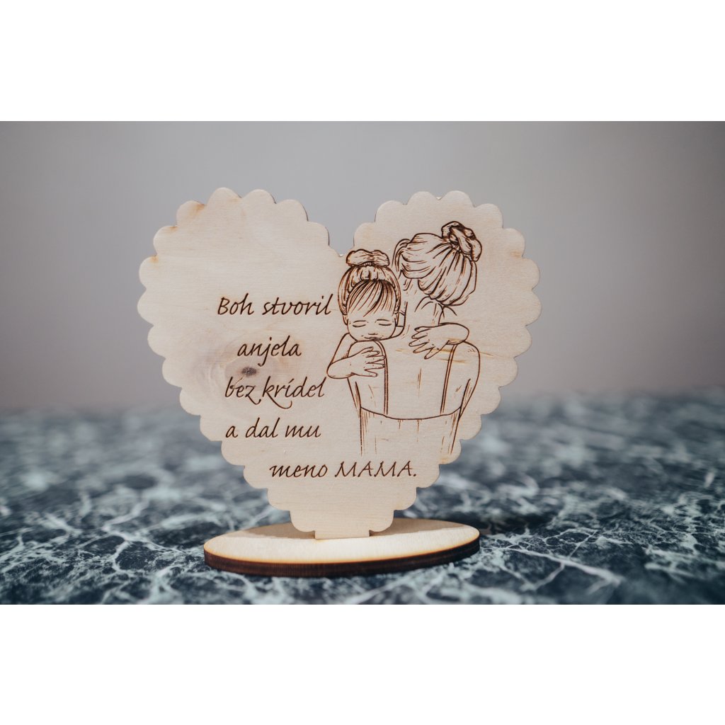 Drevené poďakovanie pre mamu - srdce na stojane Drevené poďakovanie pre mamku