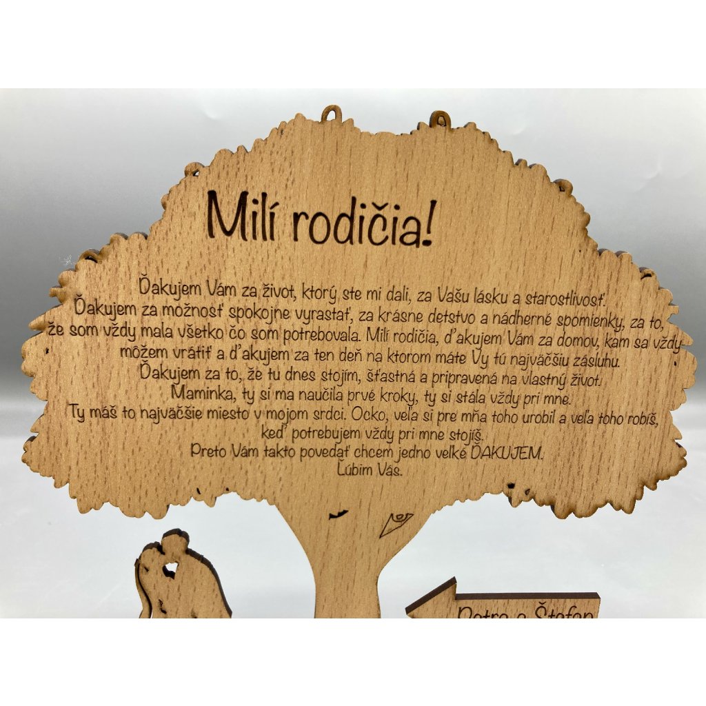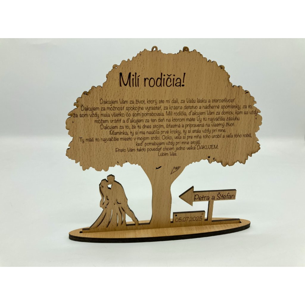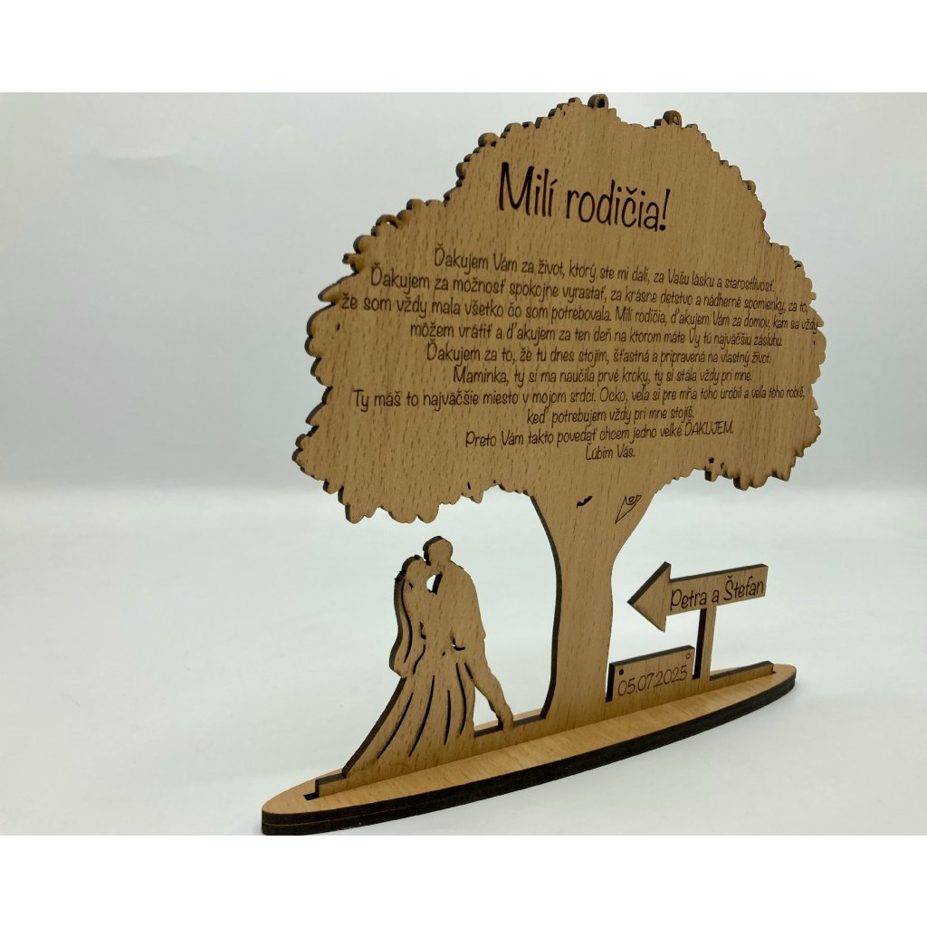 Obdarujte svojich rodičov originálnym dreveným poďakovaním v tvare stromu vyrobeným z kvalitného bukového dreva. Tento jedinečný dar dopĺňa fotorámik, do ktorého môžete vložiť spoločnú fotografiu – vďaka tomu sa stane ešte osobnejším a hodnotnejším.