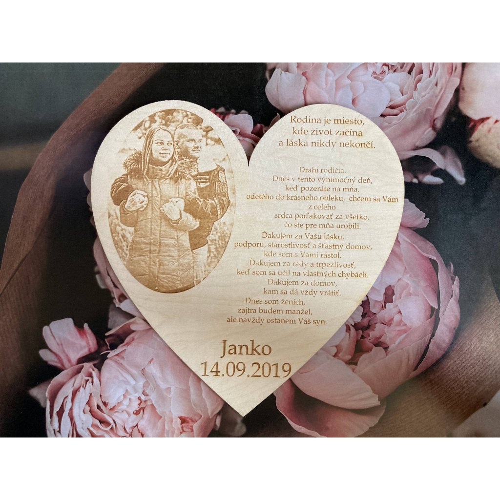 Drevené poďakovanie srdiečko s gravirovanou fotkou Drevené poďakovanie srdiečko s gravirovanou fotkou
