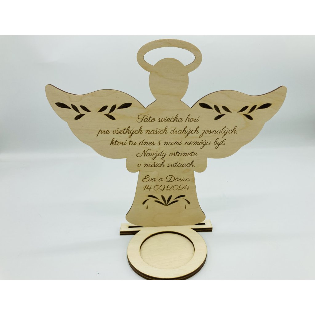 Každý anjelik je ručne vyrobený, máte na výber prírodný, biely a dekor buk. Drevený anjelik sa hodí do akéhokoľvek priestoru – či už ide o hrobové miesto, útulný kút vo Vašej domácnosti, špeciálnu spomienkovú vitrínu alebo súčasť Vášho svadobného stola, svadobnej výzdoby. Detaily sú precízne vyrezávané, čo zaručuje, že nejde len o obyčajný výrobok, ale o originálny kúsok, ktorý Vás bude sprevádzať po dlhé roky.