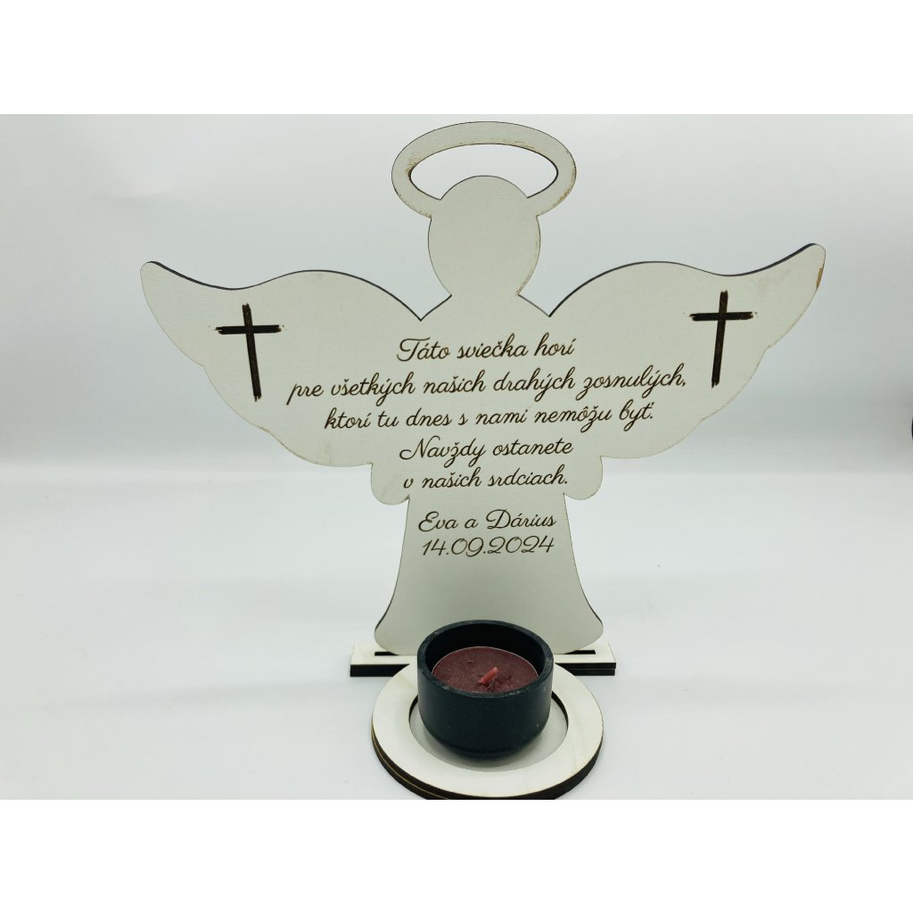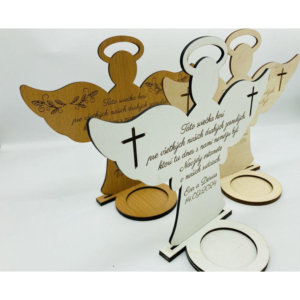 Každý anjelik je ručne vyrobený, máte na výber prírodný, biely a dekor buk. Drevený anjelik sa hodí do akéhokoľvek priestoru – či už ide o hrobové miesto, útulný kút vo Vašej domácnosti, špeciálnu spomienkovú vitrínu alebo súčasť Vášho svadobného stola, svadobnej výzdoby. Detaily sú precízne vyrezávané, čo zaručuje, že nejde len o obyčajný výrobok, ale o originálny kúsok, ktorý Vás bude sprevádzať po dlhé roky.