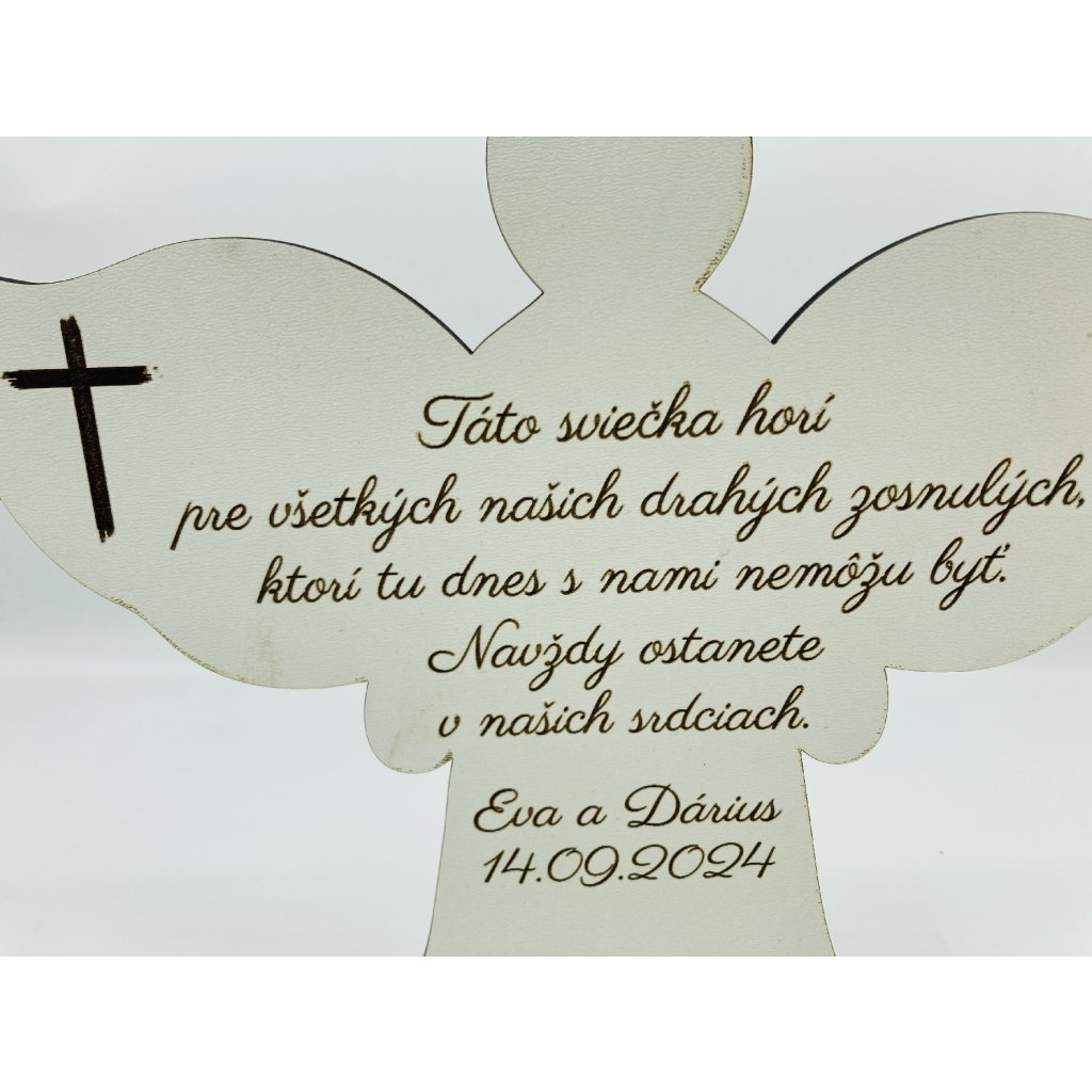 Každý anjelik môže byť personalizovaný podľa Vašich predstáv – pridajte meno zosnulej osoby, dôležitý dátum, citát, ktorý Vás spája, alebo čokoľvek, čo má pre Vás hlboký význam. Táto personalizácia robí každého anjelika jedinečným a prispôsobeným práve Vašim potrebám. Anjelik tak nebude len pamiatkou, ale intímnym symbolom spomienok, ktorý hovorí Vaším srdcom.