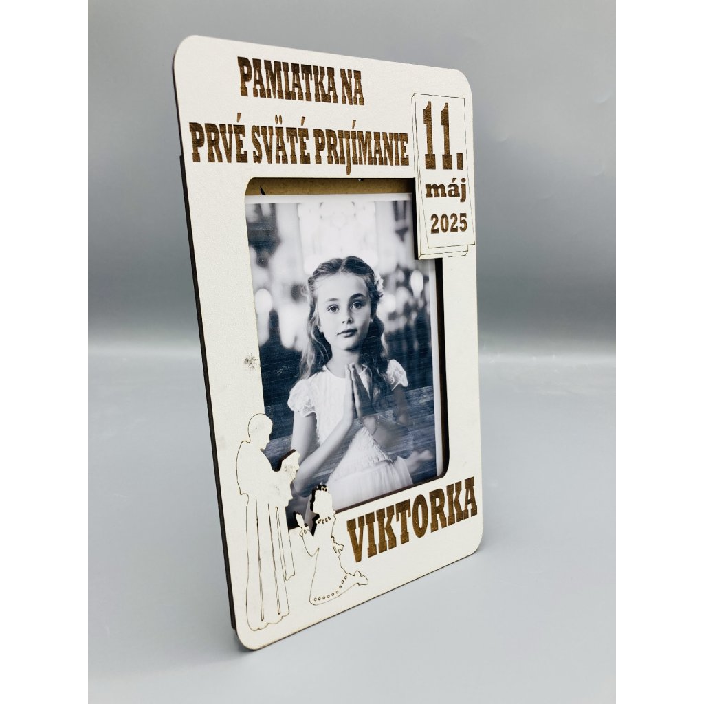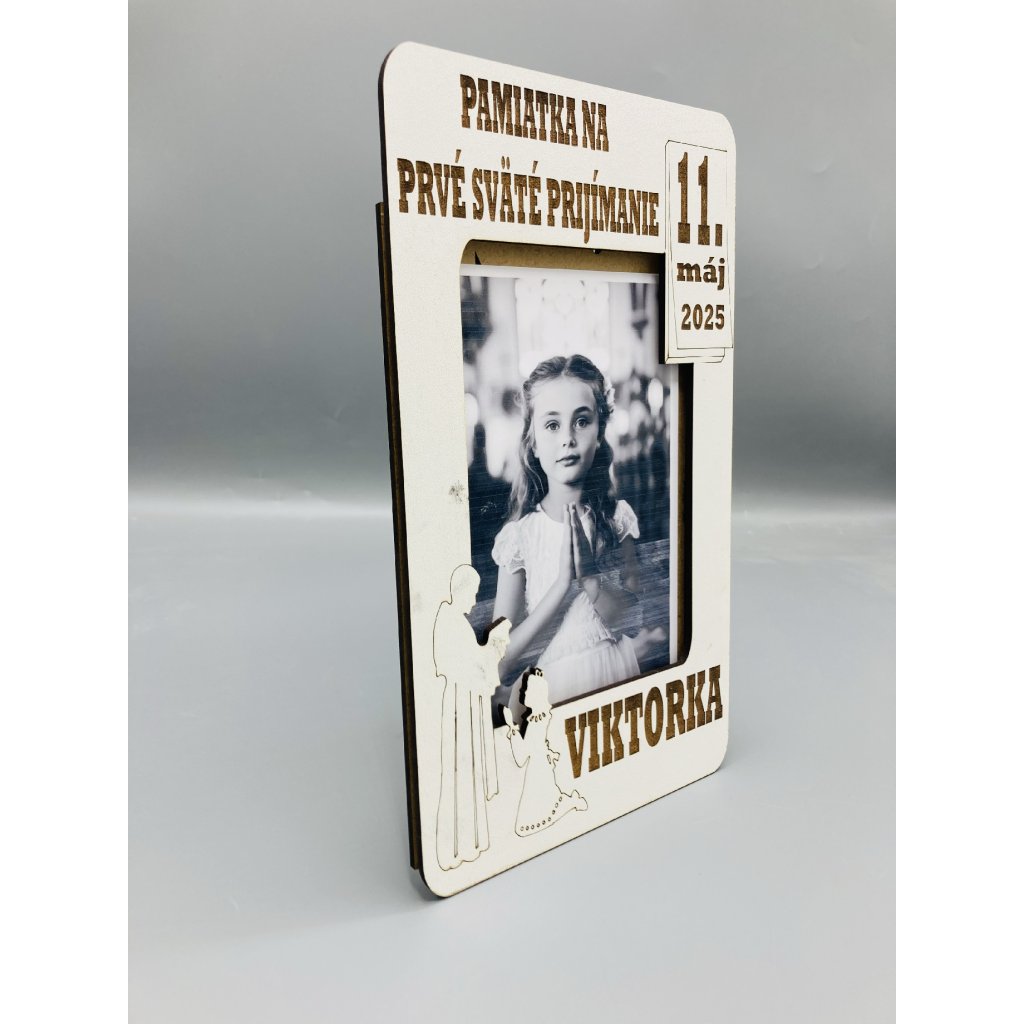Drevený biely fotorámik k 1. sv. prijímaniu pre dievča