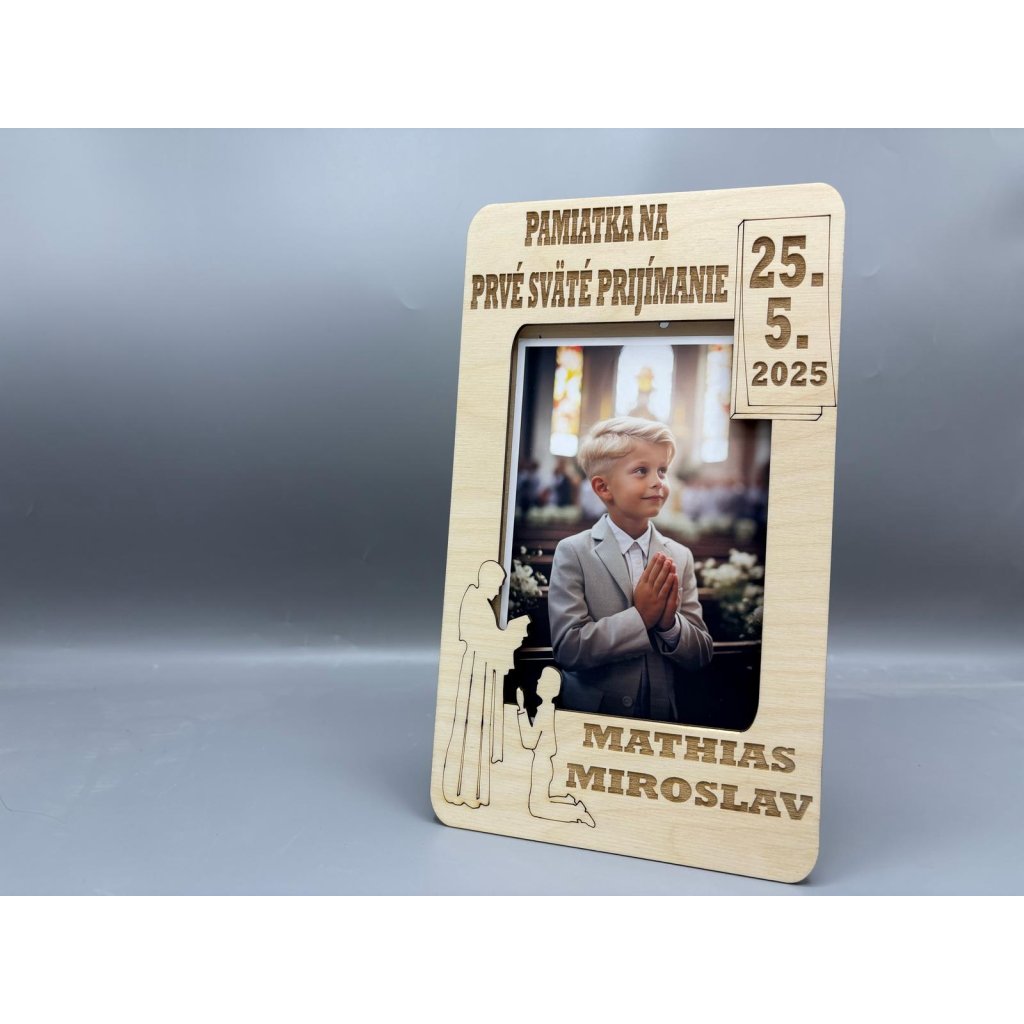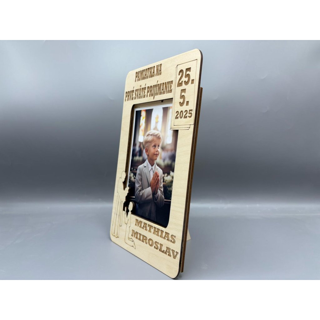 Drevený fotorámik k 1. sv. prijímaniu pre chlapca Drevený fotorámik k 1. sv. prijímaniu pre chlapca