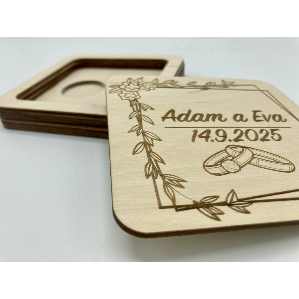 Čisté línie a jednoduchý štvorcový tvar podnosu dokonale ladia s modernými aj tradičnými svadobnými štýlmi. Jeho harmónia a proporcie zvýraznia krásu vašich obrúčok a vytvoria dokonalý kontrast s ich leskom.