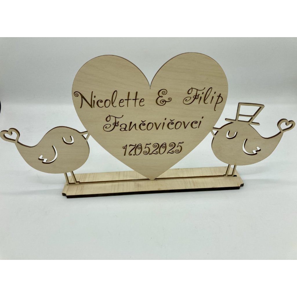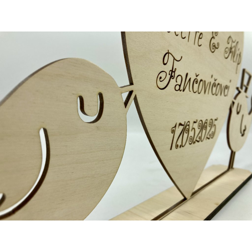 Do poznámky nám napíšte mená a dátum svadby poprípade čo by sa malo na podstavci nachádzať . Podstavce sú vyrábane profesionálnym strojom, čo sa odzrkadľuje už pri prírodnom, ktorý je bez akéhokoľvek obhorenia.