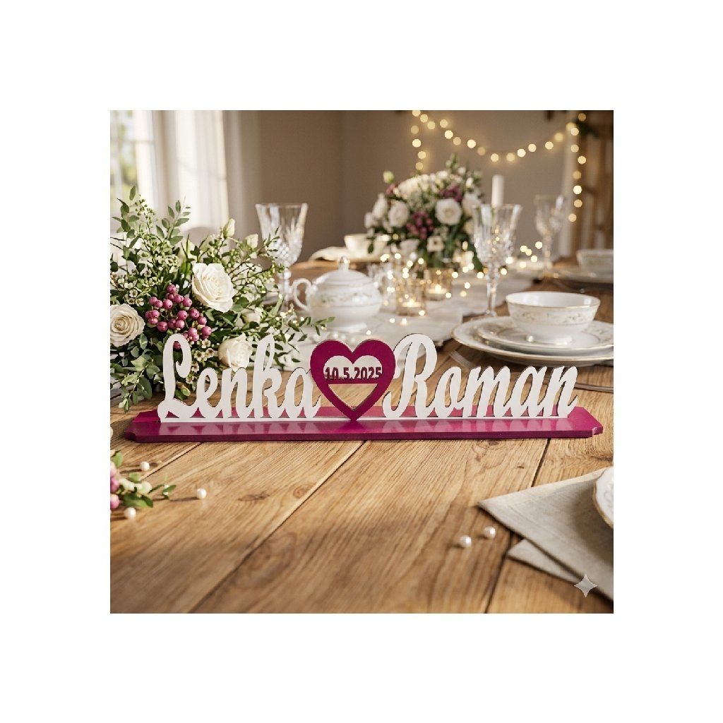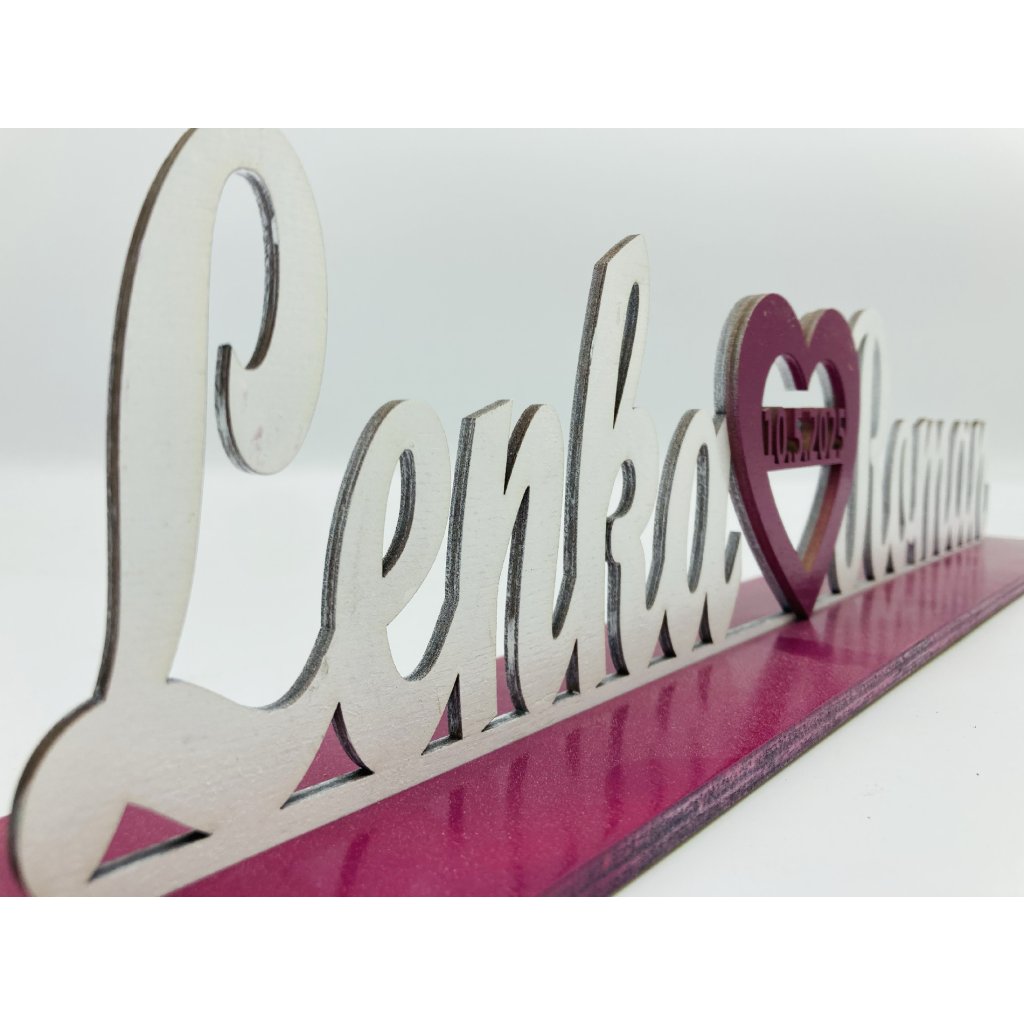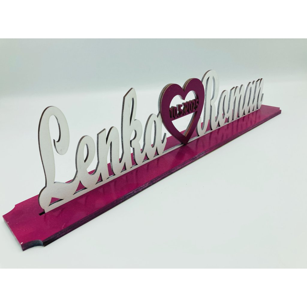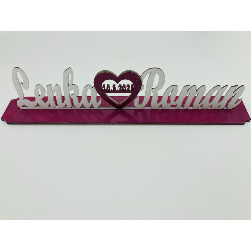 Krásny drevený podstavec s menami na svadbu . Originálna svadobná dekorácia, ktorá dokonale skrášli Váš svadobný stôl.