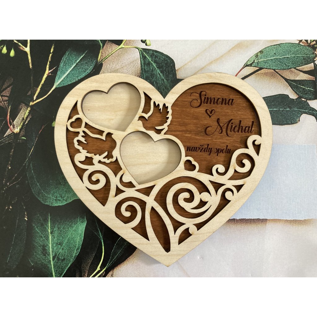 Drevený podnos na obrúčky srdiečko s vyrezávanými vzormi 2 Drevený podnos na obrúčky srdiečko s vyrezávanými vzormi 2