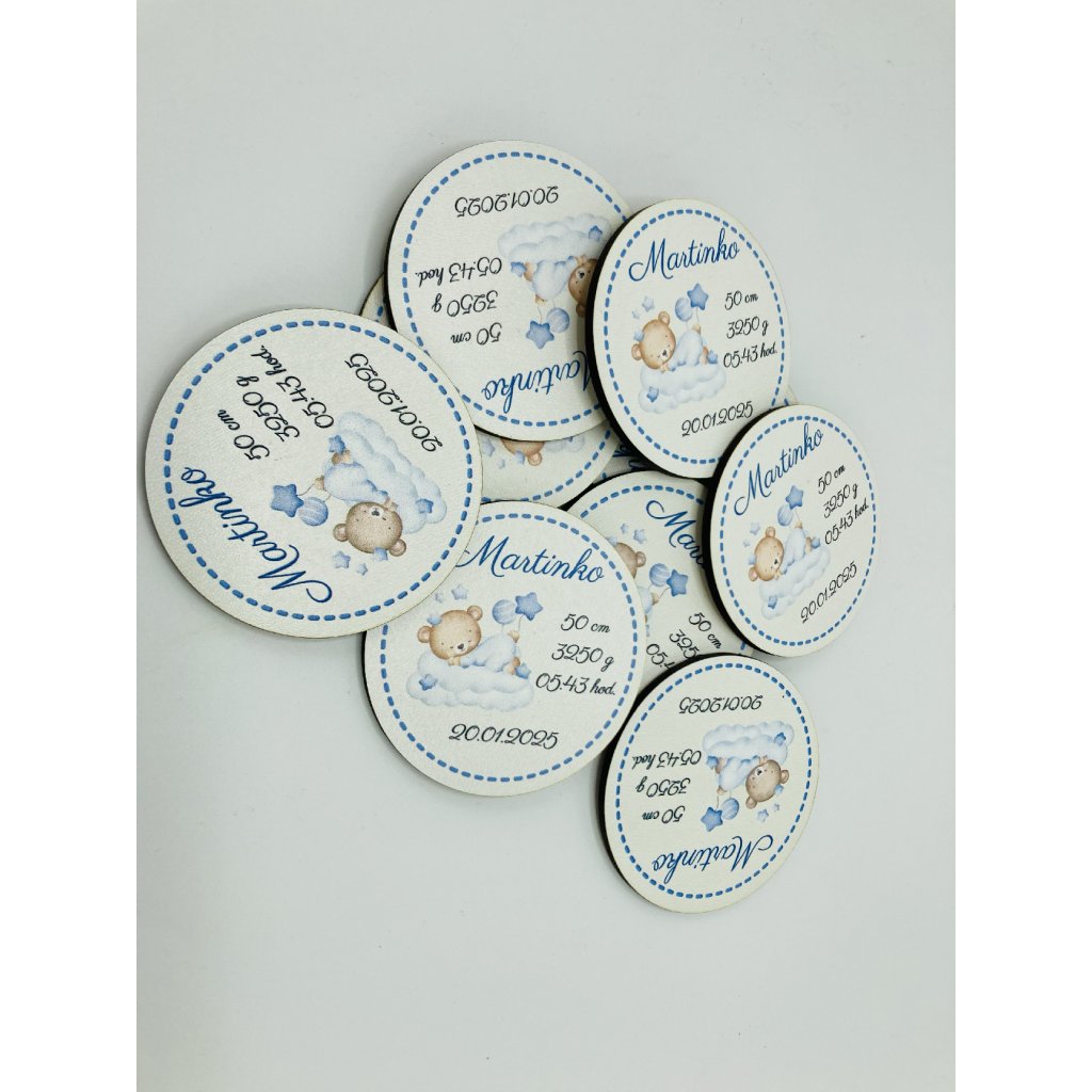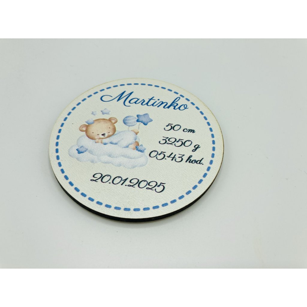 1. Personalizácia na mieru: Žiadne dva kusy nebudú rovnaké. Magnetka obsahuje meno vášho chlapčeka, dátum krstu či iné špeciálne údaje, čo z nej robí unikátny kúsok.