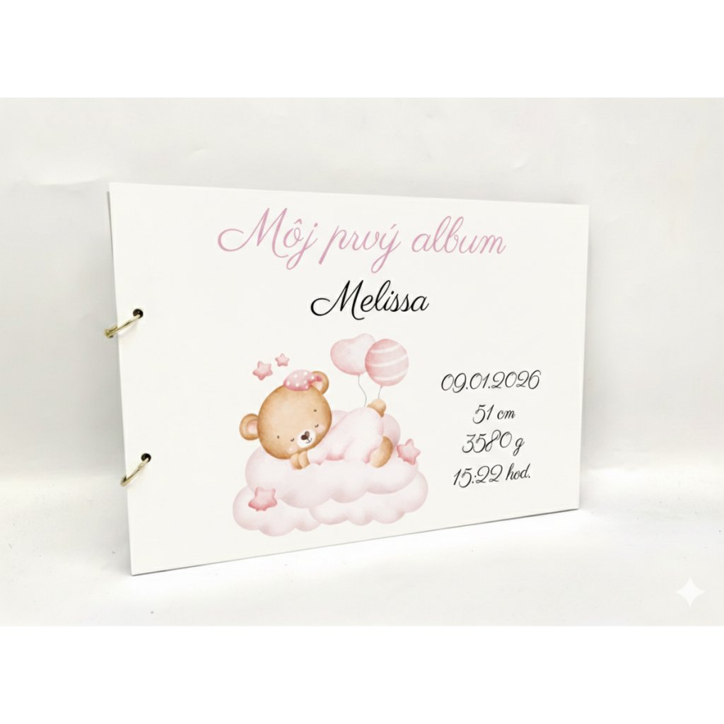Personalizovaný detský album s údajmi o narodení dievčatko