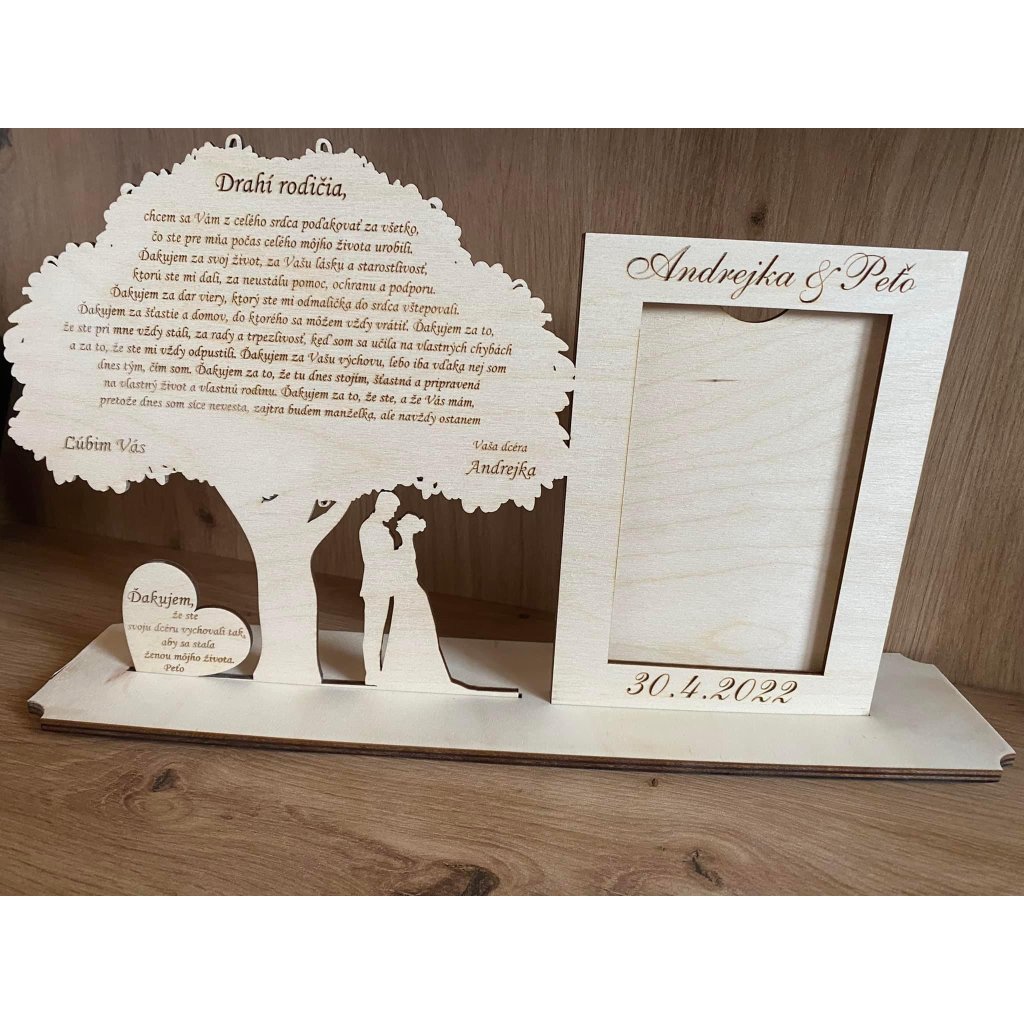 Potešte svojích rodičov originálnym darčekom. Jedinečne drevené poďakovanie pre rodičov s fotorámikom na mieru.