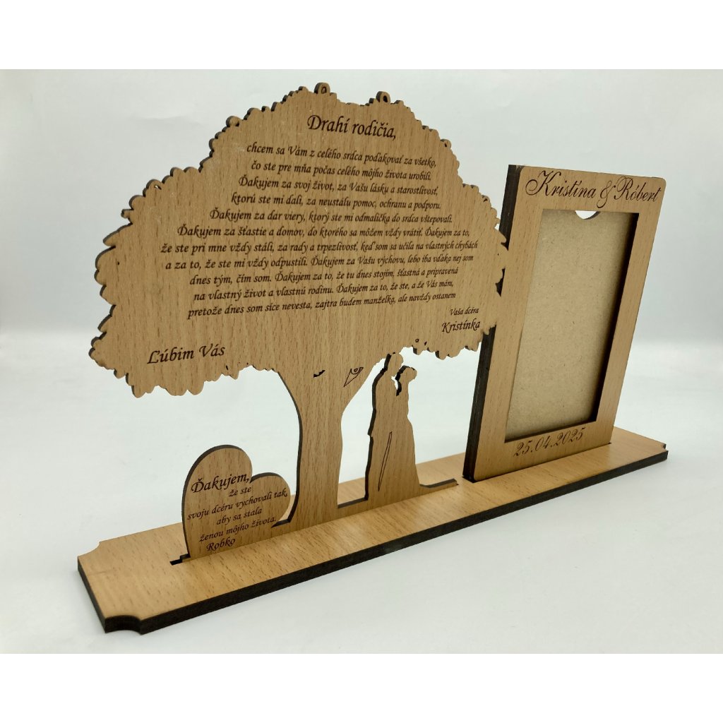 Potešte svojích rodičov originálnym darčekom. Jedinečne drevené poďakovanie pre rodičov s fotorámikom na mieru.