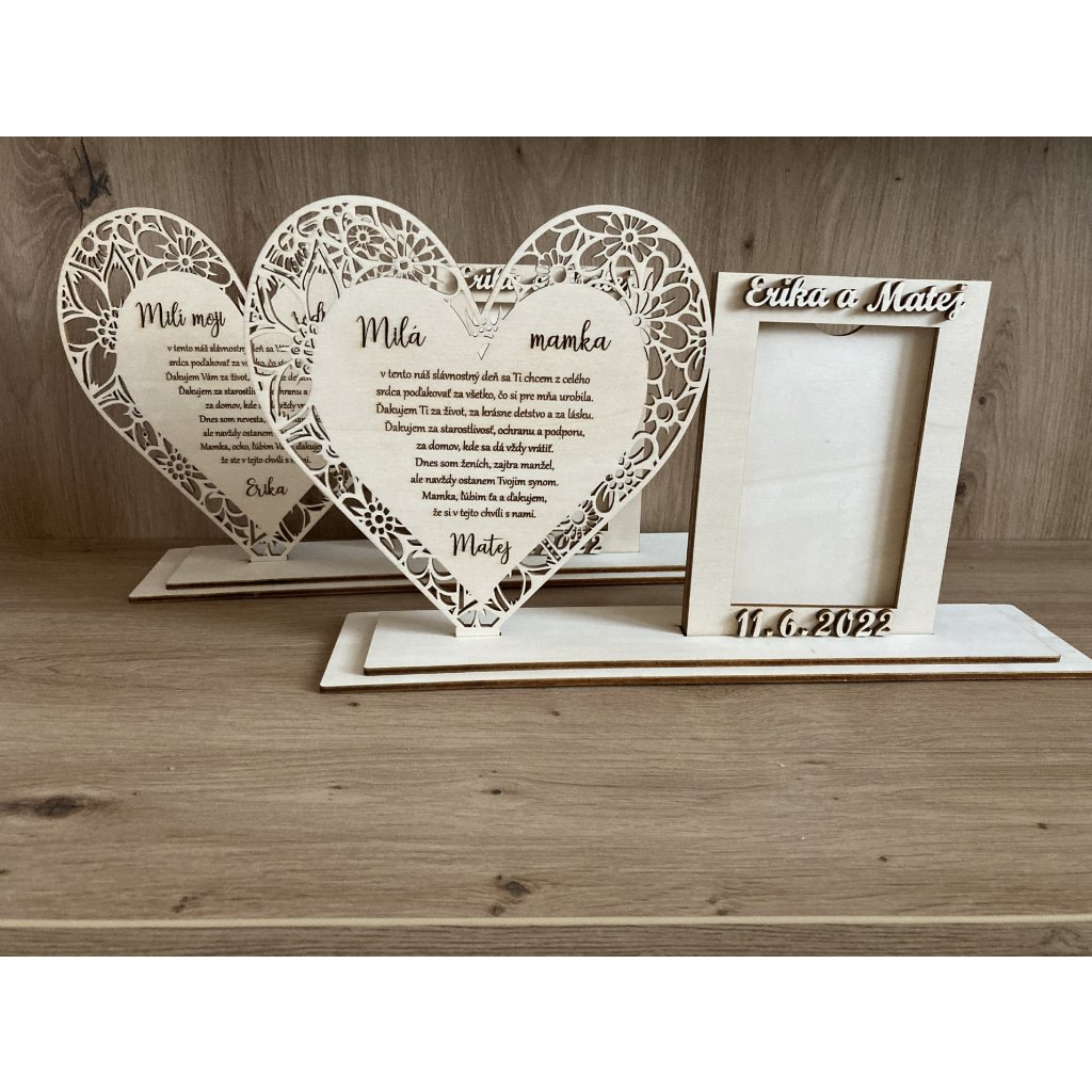 Originálne drevené poďakovanie poďakovanie rodičom, v tvare srdiečka. Potešte svojich rodičov originálny darčekom na svadbu.