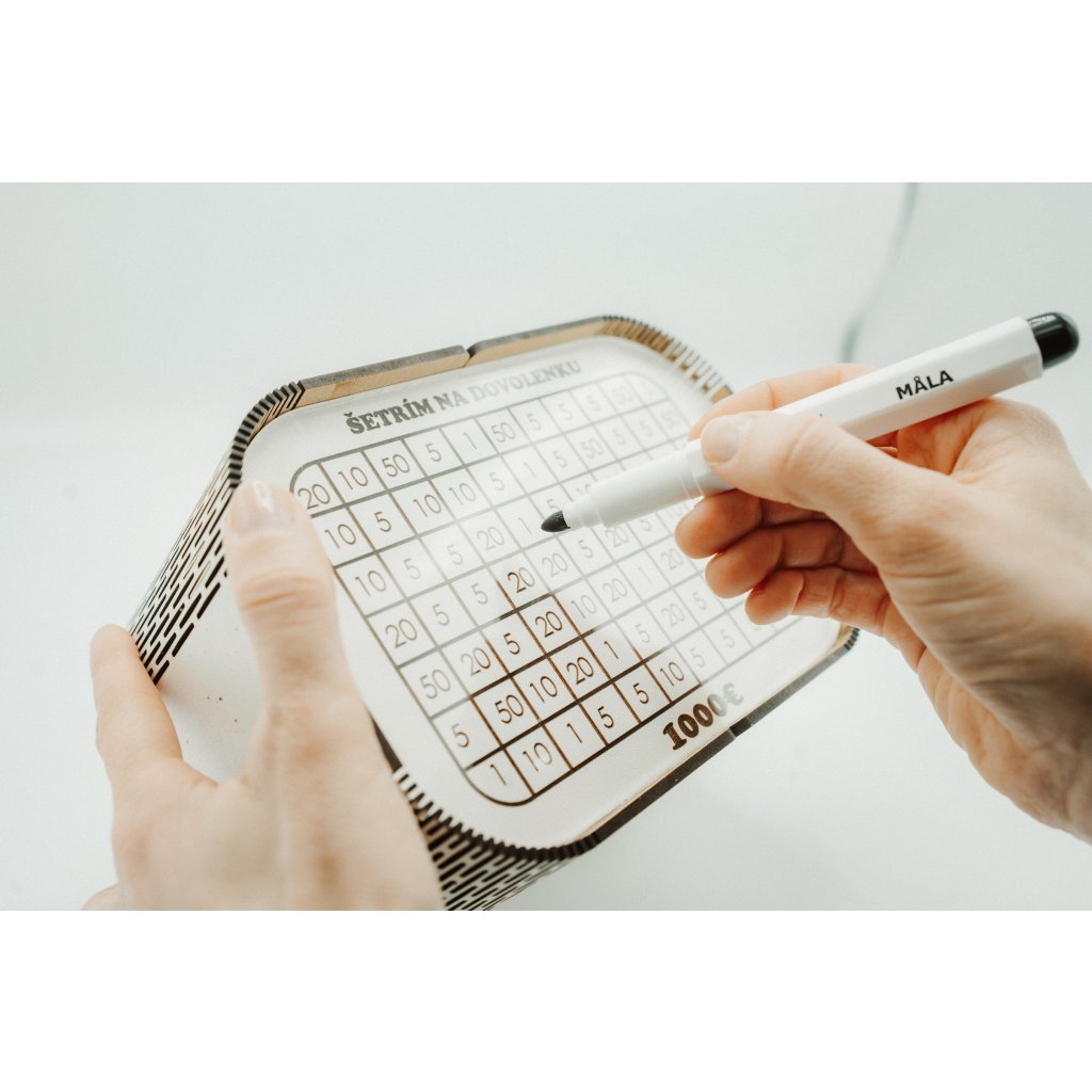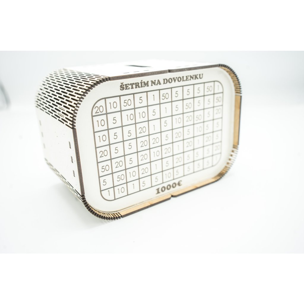 Na rozdiel od bežných pokladničiek z plastu či kovu je naša pokladnička vyrábaná z kvalitného, prírodného dreva, ktoré je starostlivo opracované na dosiahnutie dokonalého vzhľadu. Na prednej strane nájdete vkusný nápis „Šetrím na dovolenku“, ktorý vás každý deň povzbudí pokračovať vo vašom cieli.