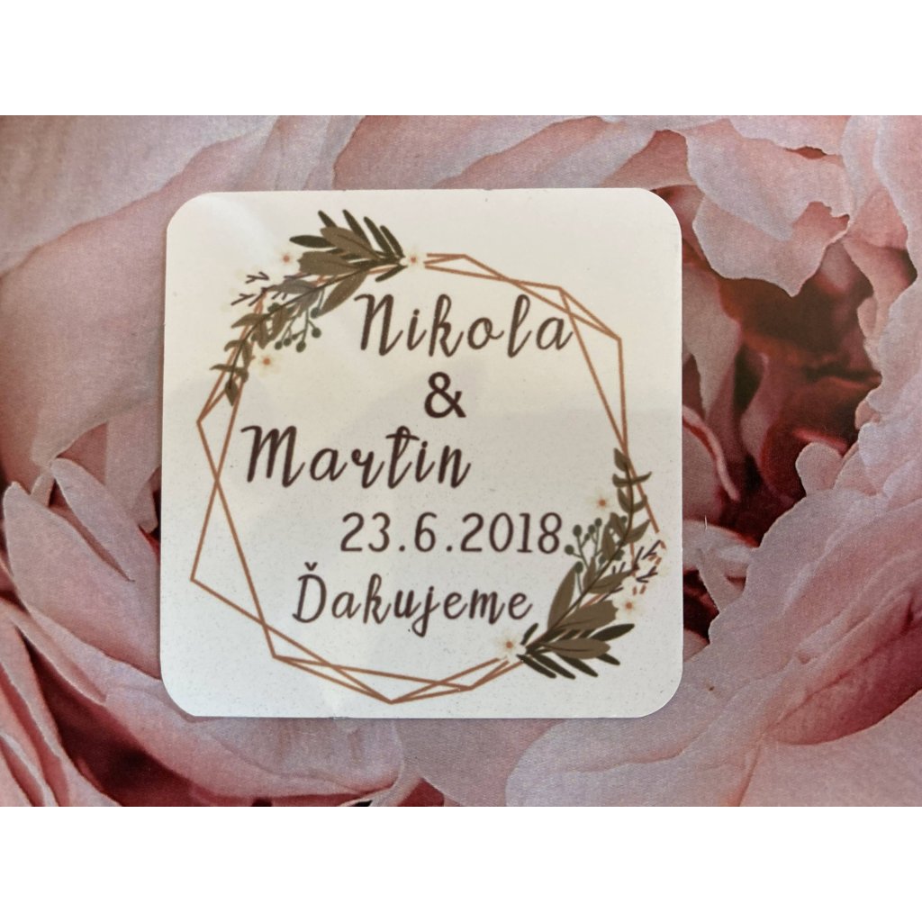 Svadobná magnetka potlačená na hliniku tzv plechová magnetka je skvelým darčekom pre svadobných hostí . Magnetka je potlačená najkvalitnejšou tlačou preto má veľmi dlhú trvácnosť a krásne farby. Magnetka má rozmer 5x5 cm v prípade záujmu vieme vyrobiť aj v iných rozmeroch. Magnetku je možné potlačiť fotografiou, rôznou grafikou alebo firemným logom.