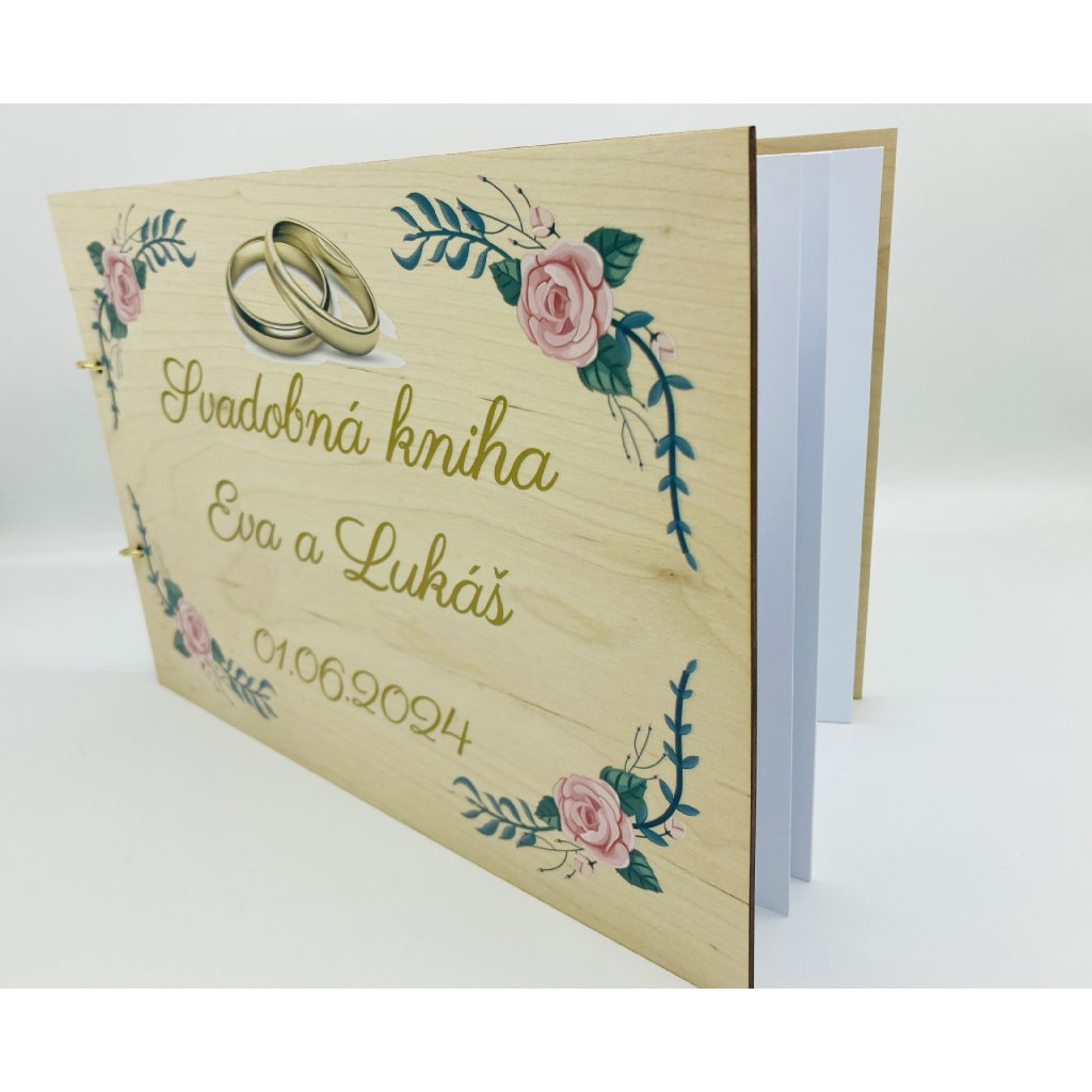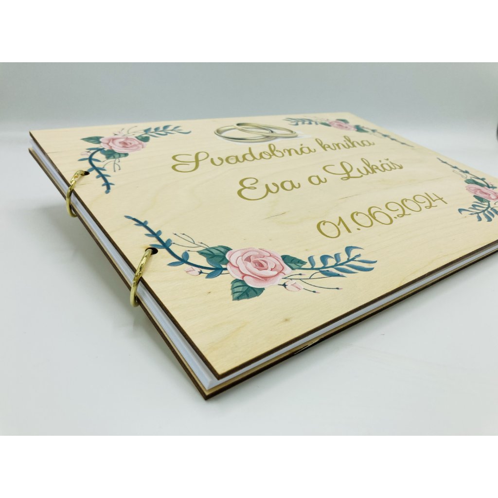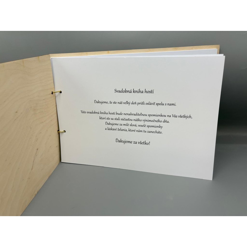 Drevená svadobná kniha hostí s farebnou potlačou bude skvelou spomienkou na Váš veľký deň do konca Vášho života!