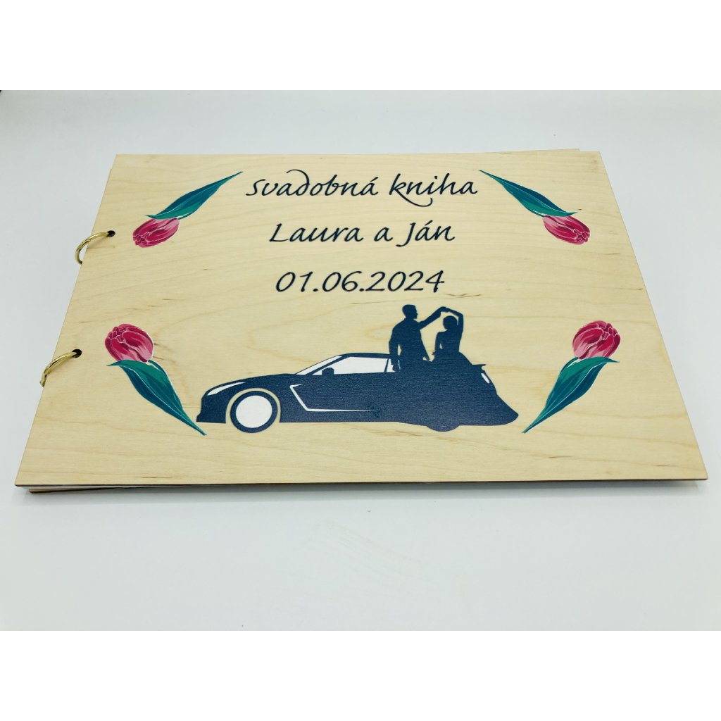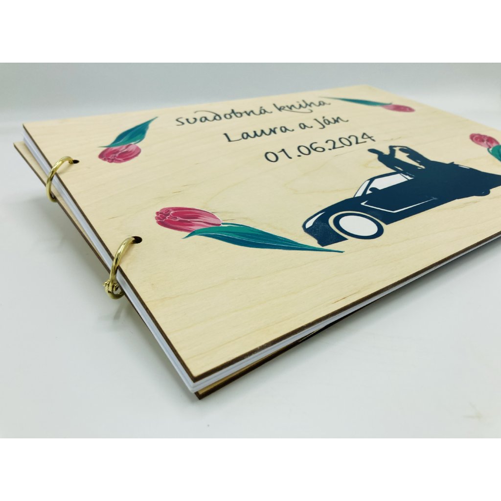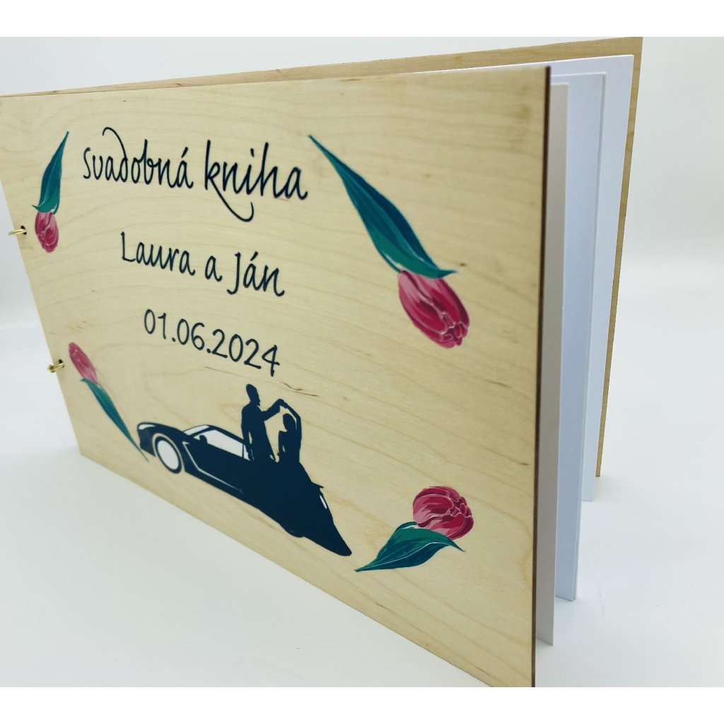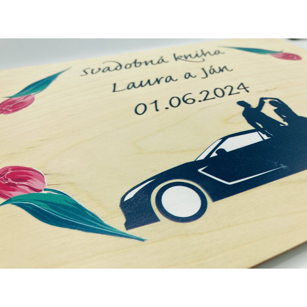 Drevená svadobná kniha hostí s farebnou potlačou bude skvelou spomienkou na Váš veľký deň do konca Vášho života!