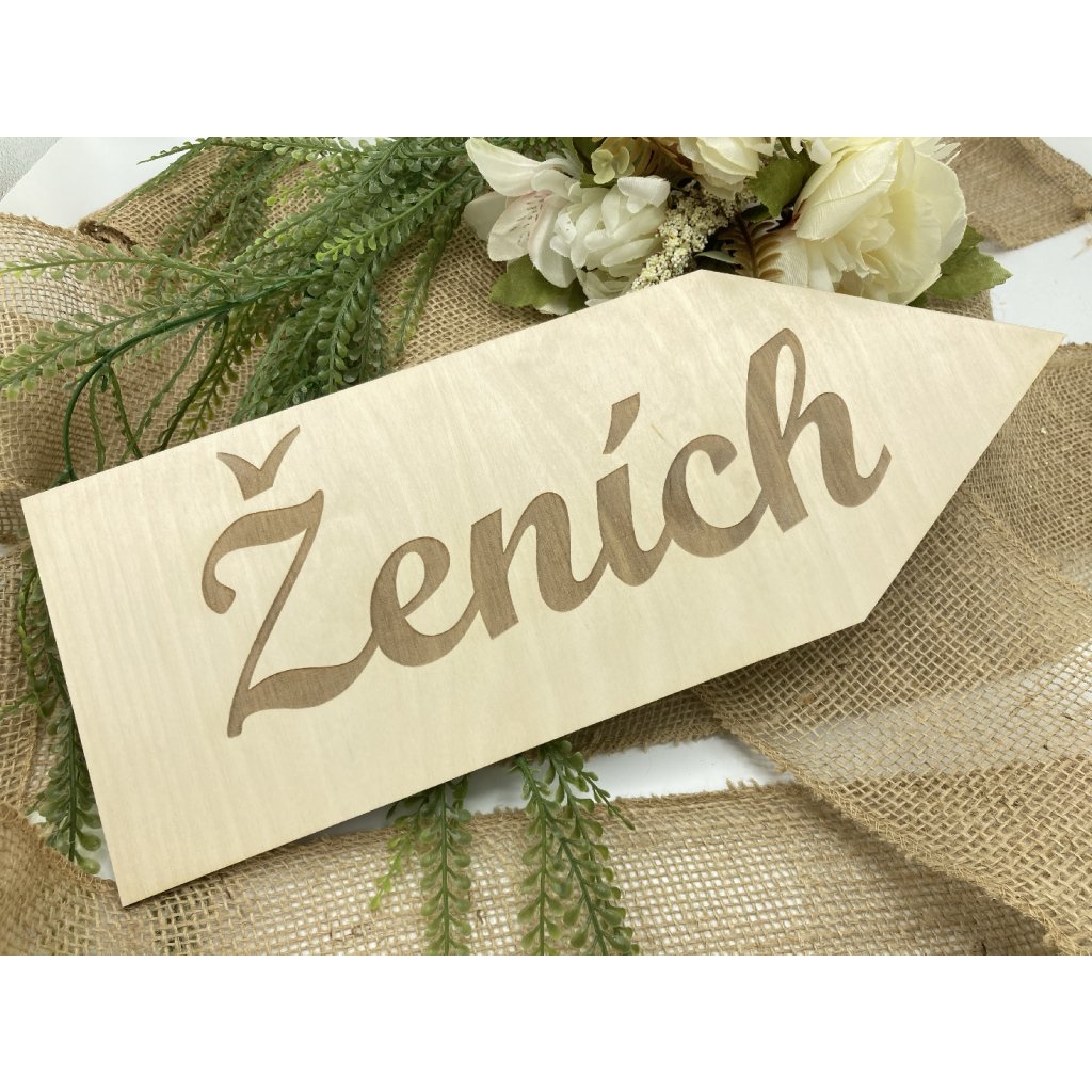 Originálne svadobné šípky pre oznáčenie ženícha, nevesty, alebo kostola. Šipky sú vyrobené z drevenej preglejky a sú buď gravírované alebo potlačené priamo na dreve. Veľkosť šipky je cca 40x15cm.