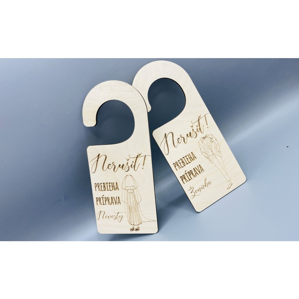 Svadobná visačka na dvere. Originálna drevená visačky na dreve príprava ženícha a príprava nevesty ♥.