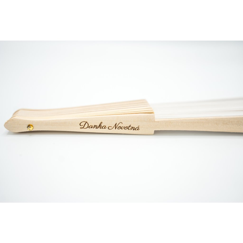 Na vejáre môžeme na mieru vygravírovať mená vašich hostí, dátum svadby, vaše iniciály alebo akýkoľvek text podľa vášho priania. Vďaka tomu bude každý kus jedinečný a pre hostí osobne výnimočný.