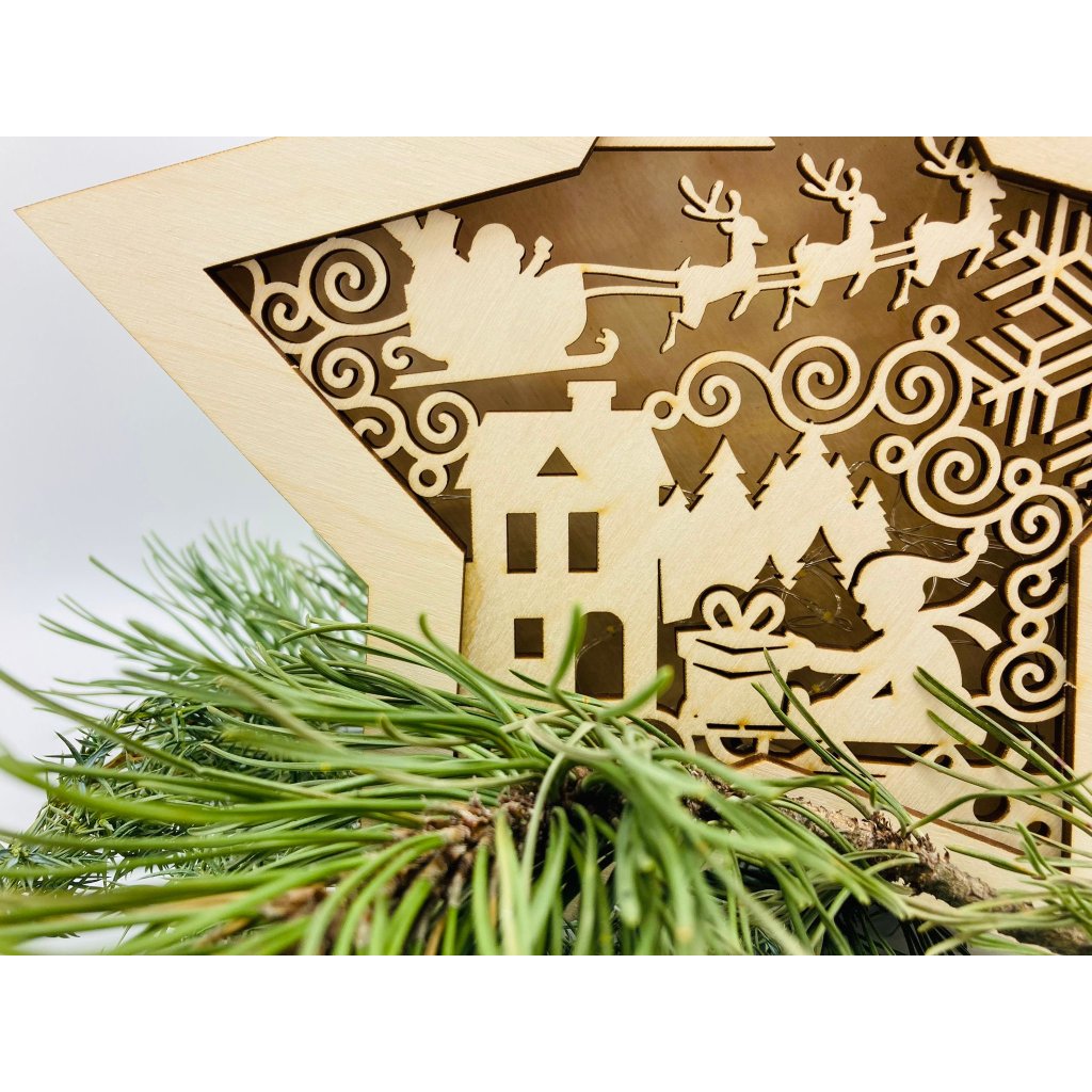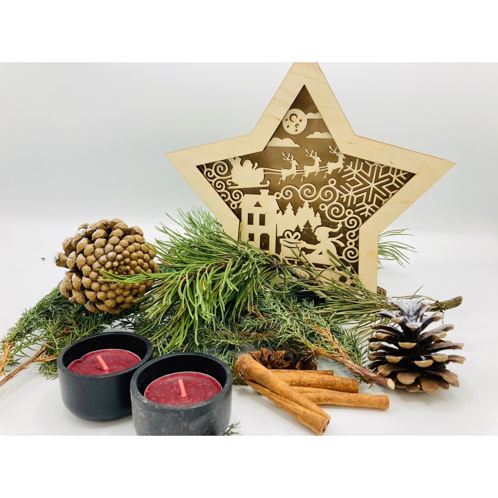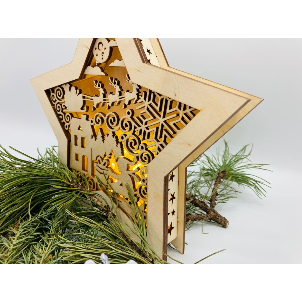 Táto nádherná, drevená hviezda s motívom Betlehema premení každý kút vášho domova na miesto plné sviatočnej mágie. Svietiaca hviezda je vyrobená z 3mm preglejky a je jemne osvetlená, aby vytvorila tú pravú, hrejivú atmosféru Vianoc.