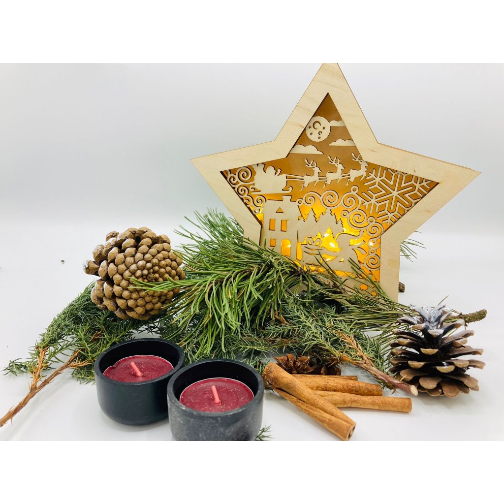 Motív Vianoc, starostlivo vyrezaný do hviezdy, dodáva dekorácii výnimočný význam a krásu. Či už ju umiestnite na sviatočný stôl, zavesíte do okna, alebo postavíte na poličku, táto hviezda prežiari váš domov príjemným svetlom a vyčarí úsmev na tvári každému, kto ju uvidí.